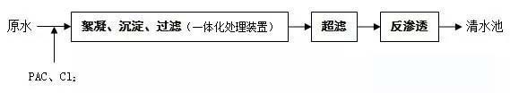 由于原水為地表水,在降雨或其它因素影響下,懸浮物含量存在巨大波動的可能性,一定情況下可能超出超濾的承受能力,因此,為了保證后續(xù)設(shè)備穩(wěn)定運(yùn)行,傳統(tǒng)的混凝、沉淀、過濾也需要設(shè)置。建議采用將此三種工藝置于一個裝置內(nèi)的一體化處理裝置。