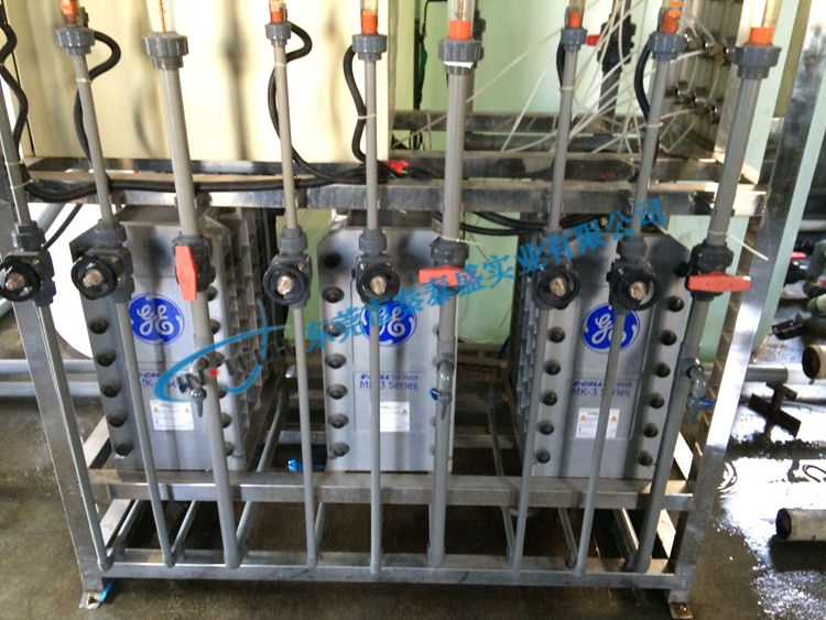 EDI是利用陰、陽離子膜,采用對稱堆放的形式,在陰、陽離子膜中間夾著陰、陽離子樹脂,分別在直流電壓的作用下,進行陰、陽離子交換。而同時在電壓梯度的作用下,水會發(fā)生電解產(chǎn)生大量H+和OH-,這些H+和OH-對離子膜中間的陰、陽離子不斷地進行了再生。由于EDI不停進行交換——再生,使得純水度越來越高,所以,輕而易舉的產(chǎn)生了超高純度的超純水。EDI超純水設備,這一新技術可以替代傳統(tǒng)的離子交換裝置,生產(chǎn)出高達18M.CM的超純水。