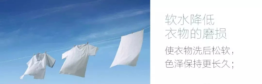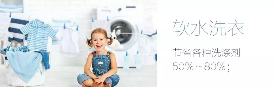 洗衣: 衣物柔軟、潔凈、色澤如新,衣物纖維增加33%洗滌次數(shù),減少洗衣粉55%使用量,減少洗衣機等用水設(shè)備由于使用硬水而導(dǎo)致的維修問題。